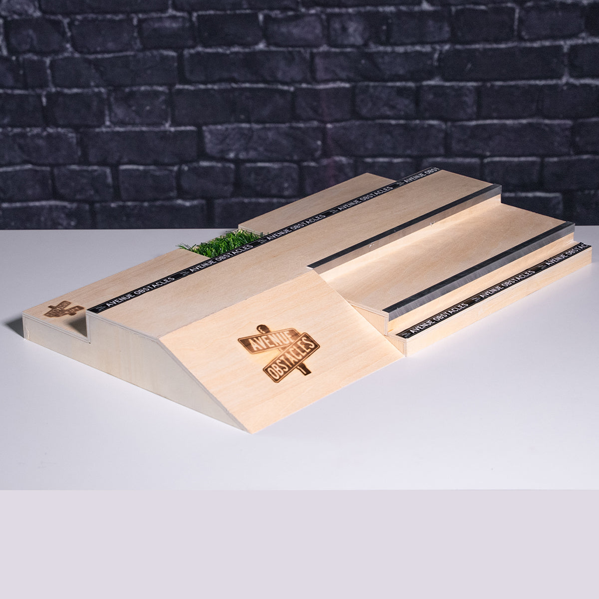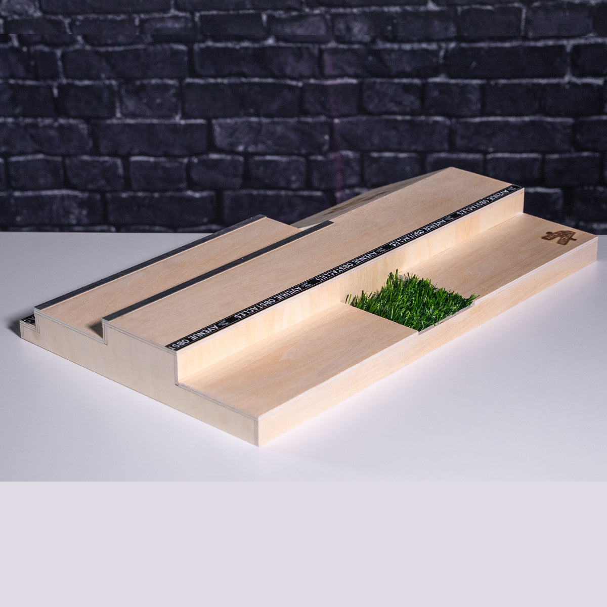 The Halo Stairset is one of our favorite obstacles so naturally we had to name it after one of our favorite video games. This stairset is pretty much an all-in-one obstacle for people looking to make a few additions to their set ups. It has an extended 3-stair with coping so you can do tricks up or down them, or do grinds on them. It also has a kicker and impromptu box jump on one side to even do some combos off the bank onto the ledges. On the backside it has a long flat-ledge with a small bush gap in the middle to practice those steezy combos.